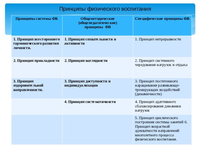 Основные принципы физических упражнений